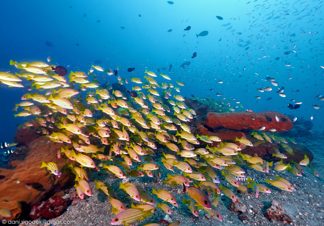 We have new muck dive sites and it is common to see huge painted frogfishes, seahorses, leaf scorpionfishes and reef sharks.
